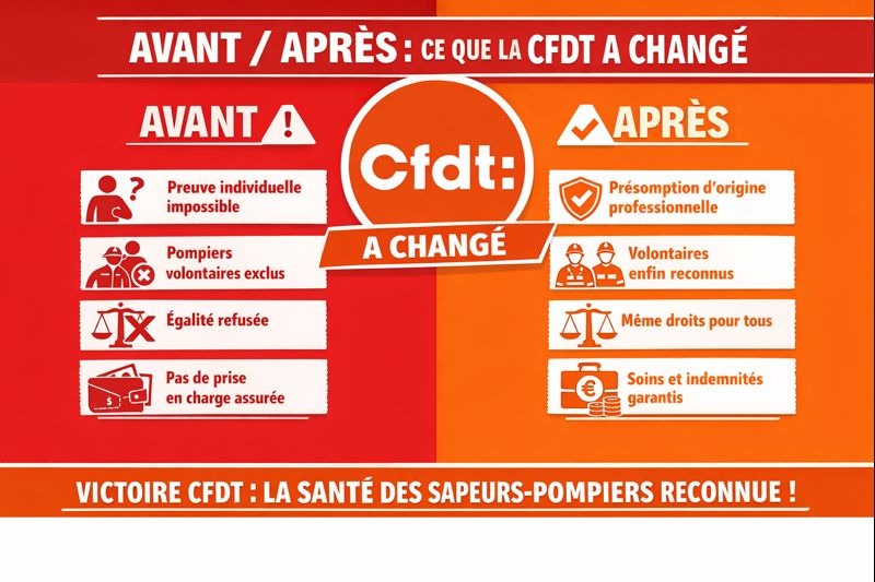 Depuis des années, la CFDT est la seule organisation syndicale à porter avec constance, rigueur et courage un combat central : la reconnaissance des maladies professionnelles des sapeurs-pompiers.
